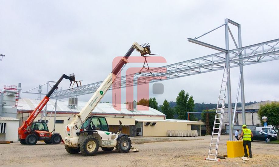 Construção de Pipe Racks para suporte de tubagens. Estruturas metálicas compostas por colunas e vigas metálicas, são ideais para sustentar tubulações, com alta durabilidade e enorme resistência à corrosão, sendo submetidas às constantes cargas decorrentes dos próprios pesos das tubulações, calhas elétricas e dos vários pesos das cargas transportadas pelas tubulações.