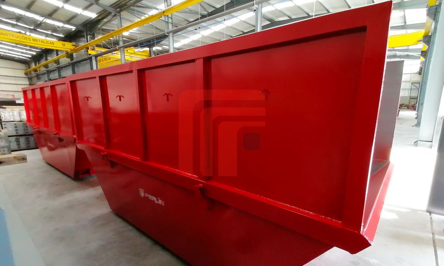 Contentores Multibenne com taipal, com capacidade de 8 a 12m³. Processo de Construção integrado no Sistema de Gestão da Qualidade de acordo e certificado pela norma ISO 9001:2008 e Soldadores com Certificado de Qualificação de Soldador.